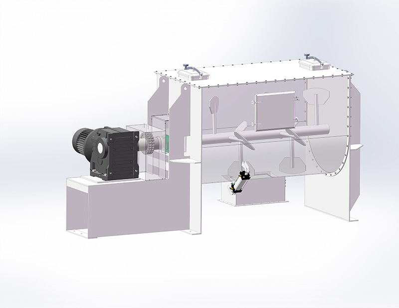 臥式犁刀式高效混合機混合時,機內(nèi)物料在犁刀的作用下,一方面沿筒體內(nèi)壁作用向徑向湍,另一方面又沿犁刀兩側(cè)面的線方向飛濺。使物料不斷的對流、擴散、翻動,從而在極短的時間內(nèi)達到均勻的混合。